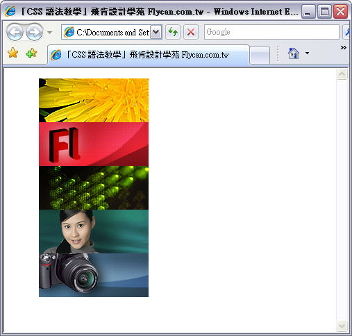 使用 CSS编排多张图片时,在图片下方有时会产生几个像素的缝隙~ 如下图所示: 解决方法: 只要在 CSS 中为图片定义以下规则: img{ vertical-align:bottom;} 使用后的结果~ 如下图所示: