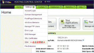 1、首先登陆你的Godaddy主机管理,点击 如下图菜单进入SSH开通设置