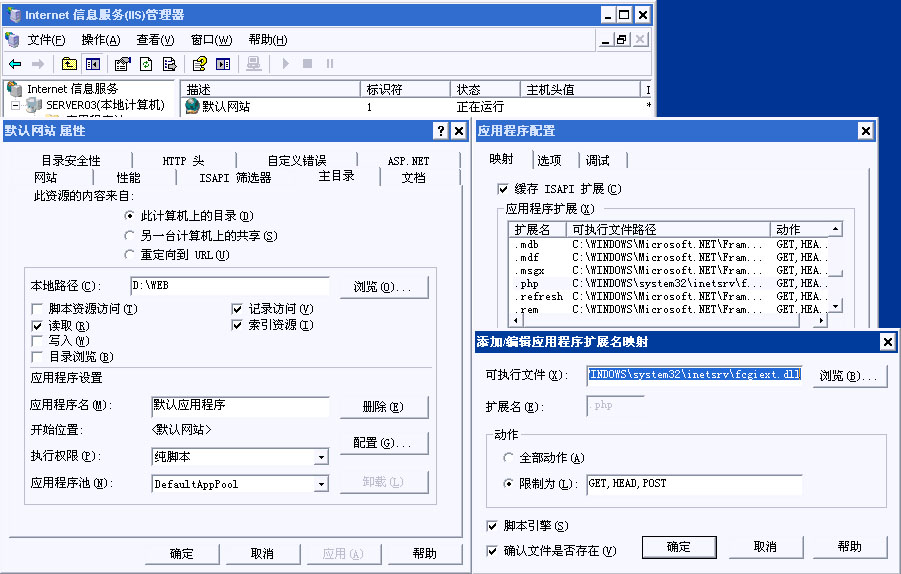 编辑 C:/WINDOWS/system32/inetsrv/fcgiext.ini文件,在最后增加