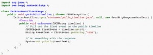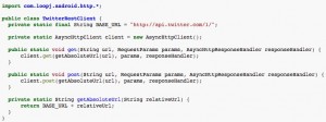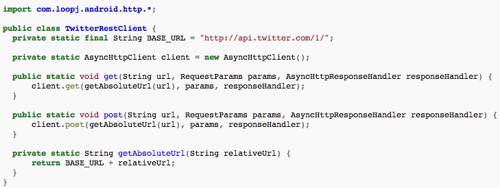 官方推荐的使用方法,使用一个静态的请求对象,我们来看看官方例举的一个访问Twitter的API的例子: