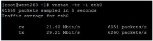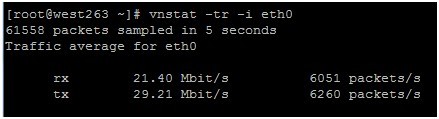 vnstat –tr –i eth0   查看最近五秒的平均流量