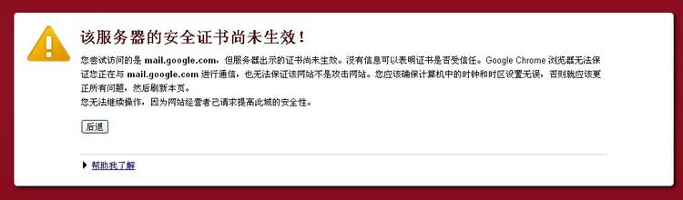 当看到上面的技术细节的有关描述时,才发现是我的系统时间有问题,不知道什么时候手痒,被我设置成比当前时间要早的时间了。