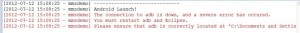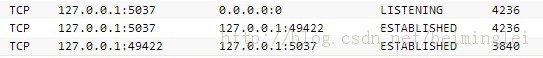 我的问题最根本其实是端口5037被占用,在命令行中运行netstat -a,会出现一堆东西,找找是否有关于5073端口的东西,经我验证我的是有东西的,所以我的端口被用,但是我已经将adb.exe杀掉,所以是别的东西占用了这个端口,回忆了下,最近有什么操作和之前不同,就是用豌豆荚连了下真机,那有可能就是豌豆荚占用的,我先关闭eclipse,我在进程中杀掉了豌豆荚,然后再重启eclipse,之后命令行执行adb reboot;出现下列情况